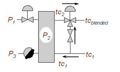 减少通过板式换热器二次侧流量和更高的tc2值减少板换过大的可能,并保证较高的P2值。.