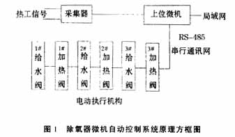 项城热电公司主要为莲花味精集团生产热力和电力,平均热负荷350t/h左右,最高可达00t/h,年供热量230万t以上,热力生产能力在全国的地方电厂中名列前茅,不仅供热量大,而且热用户对供汽的压力、温度的稳定性要求很高,对锅炉的安全稳定运行提出了很高的要求。因此给水除氧系统必须稳定、可靠地运行。除氧器每三台为一个系统,分布在南、北两个生产区,分别为四台35t/h链条炉和七台75t/h循环流化床锅炉供水,锅炉给水量600t/h左右。每一除氧器系统的进水、出水、加热都实行母管制。除氧器实行母管制运行的优点:一是可节约厂用电,二是大大提高了锅炉稳定给水的可靠系数,不会因为某一台除氧器出现问题而影响锅炉的给水。但是这种运行方式也给操作带来了很大的困难,除氧工的操作极易造成除氧器偏调:压力高的除氧器的水通过公用的出水母管压进压力低的除氧器里,结果造成前者沸腾汽化、给水泵不能工作,后者发生满水溢流、造成浪费。以前,为了把除氧器的水位、和温度控制在合格的范围内,每一个运行班都要在一百米长的平台上来回不停地奔走,根据各台除氧器的水位、压力、温度高低情况,频繁地手动操作各个给水阀门或加热阀门。