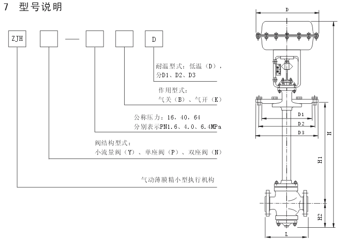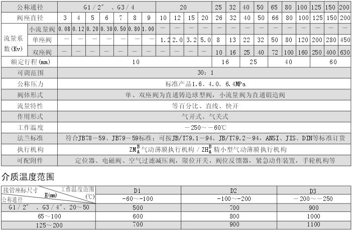 3、气动薄膜低温调节阀主要技术参数