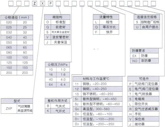 三、气动薄膜单座调节阀的型号编制: