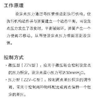 ZZV型自力式微压调节阀是一种不需要外加能源的自力式执行器产品。自力式微压调节阀可分段调节:从50mm.W.C至0.1MPa。其用途十分广泛,可用于工业燃烧炉系统微压减压、稳压。控制两种物料,如煤气、空气流量配比,以达理想燃烧。用于氢冷发电机组密封油系统,控制密封油与氢气间压力差,以确保可靠密封。当差压阀的低压端通大气即为微压阀(差压阀负压,端压,力为零)。