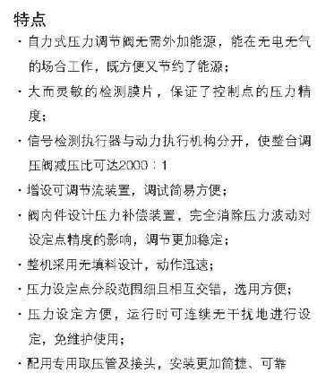 ZZY-II型自力式带指挥器型压力调节阀的工作原理及技术特点: