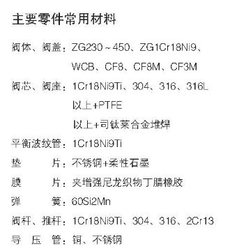 三、ZZY-II型自力式带指挥器型压力调节阀的主要零件常用材料: