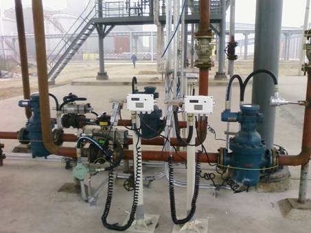 批量装车控制仪(简称批控仪)是现场装车的核心设备,由该设备统一采集各设备的各种模拟量、开关量信号,形成各种直观数字、状态等,在批控仪屏幕上显示出来,操作人员通过批控仪上的按键可以设置各类参数、进行阀门组态设置等。同时批控仪还提供了485协议与上位机通信,实现微机对装车现场的监控。自动定量装车系统采用进口E+H批控仪,具备高可靠性、易使用性等特点,同时提供了方便的阀门组态功能,成为精确灌装的基础;同时,该批控仪具备温度补偿的功能,可以实现体积流量计计算质量的需求。