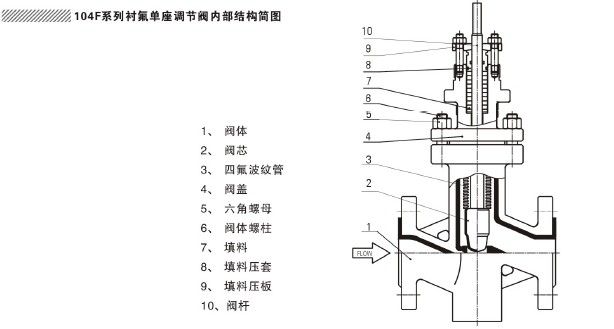 ZJHPF型气动薄膜衬氟单座调节阀内部结构简图: