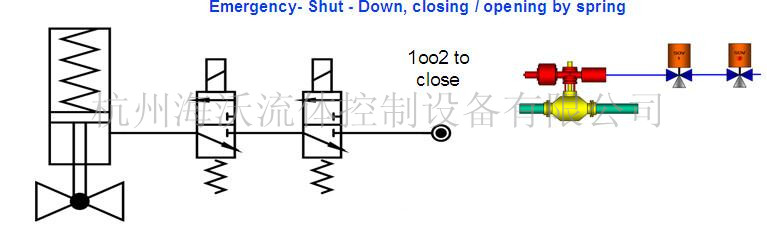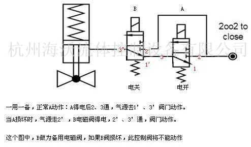 联锁气动切断球阀中两个电磁阀的安装达到多重保护作用配置图